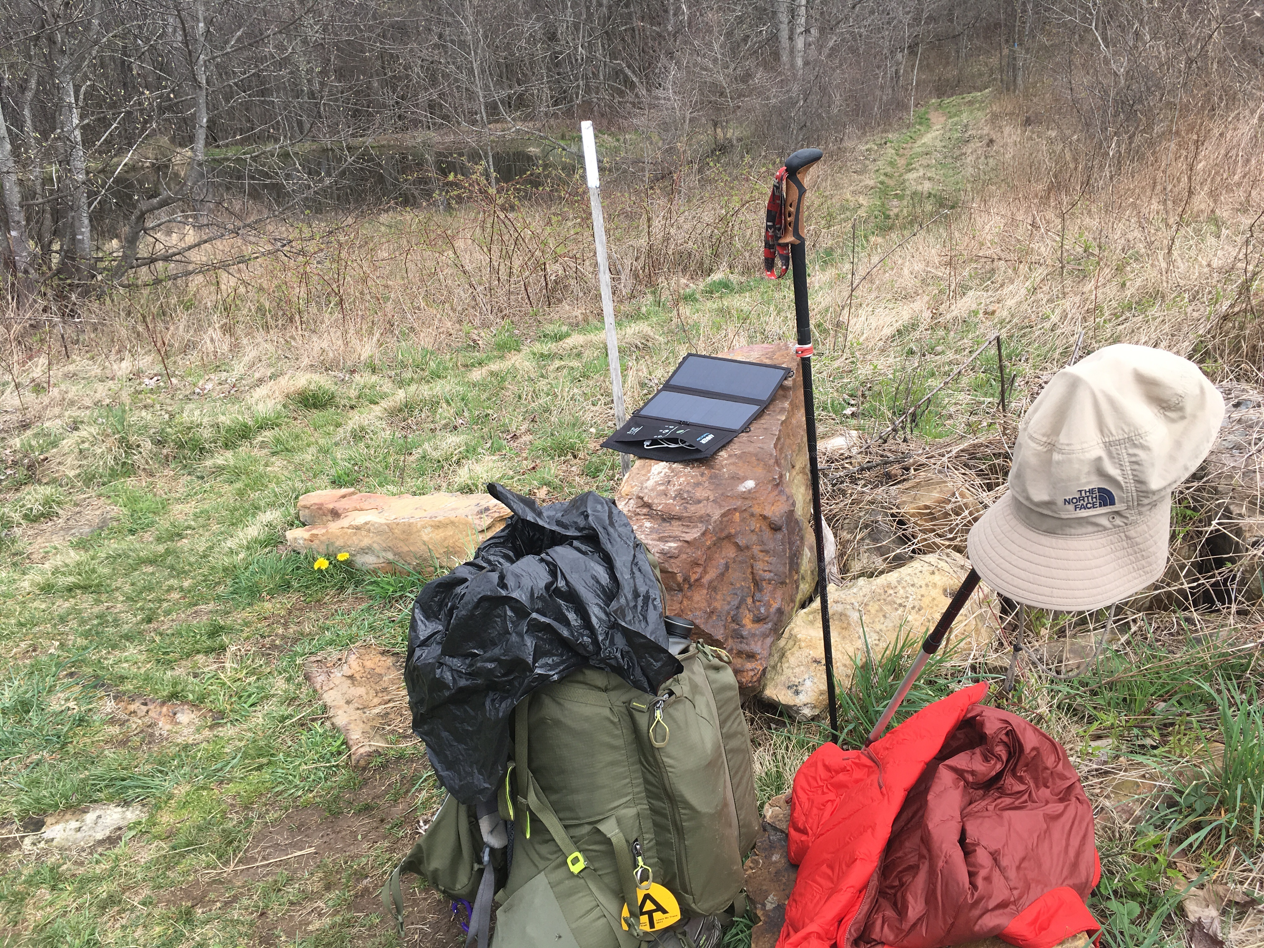 I found a great place on Chestnut Knob to take a break. The sun was shining so I took about 40 minutes and charged my phone for awhile. I called Amy and uploaded pictures and posted my blog. I also had a snack.