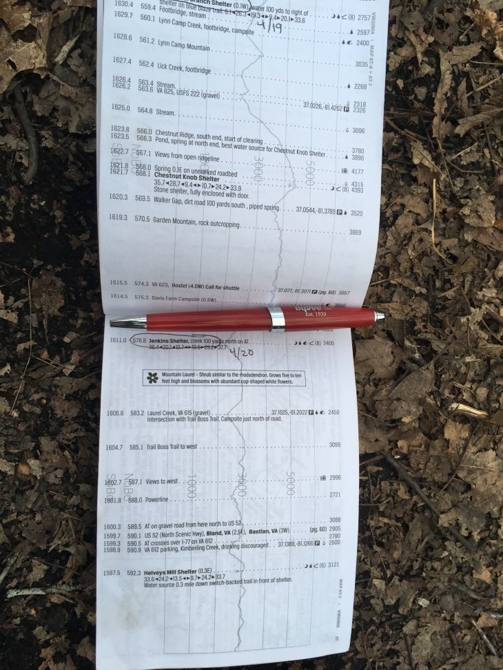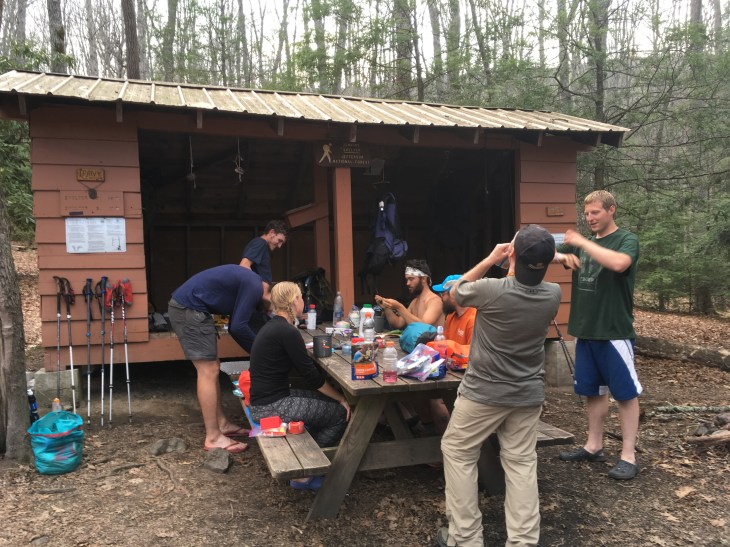 I arrived at the shelter about 4:15 and claimed a spot. Engineer and Maple Syrup are here. Also Spidy, Veto and Deer Slayer. The others I don’t know yet.