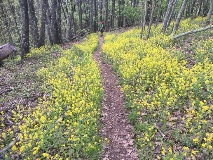 - Very uneventful day. I hiked 23.7 miles today. I started at 6:00am with Double Knot. We hiked together for about four hours. He got a little ahead and I stopped for a break and I never saw him again. This is Double Knot from a distance. I was really taking a picture of the flowers. The trail has been paralleling the famous Blue Ridge Parkway.