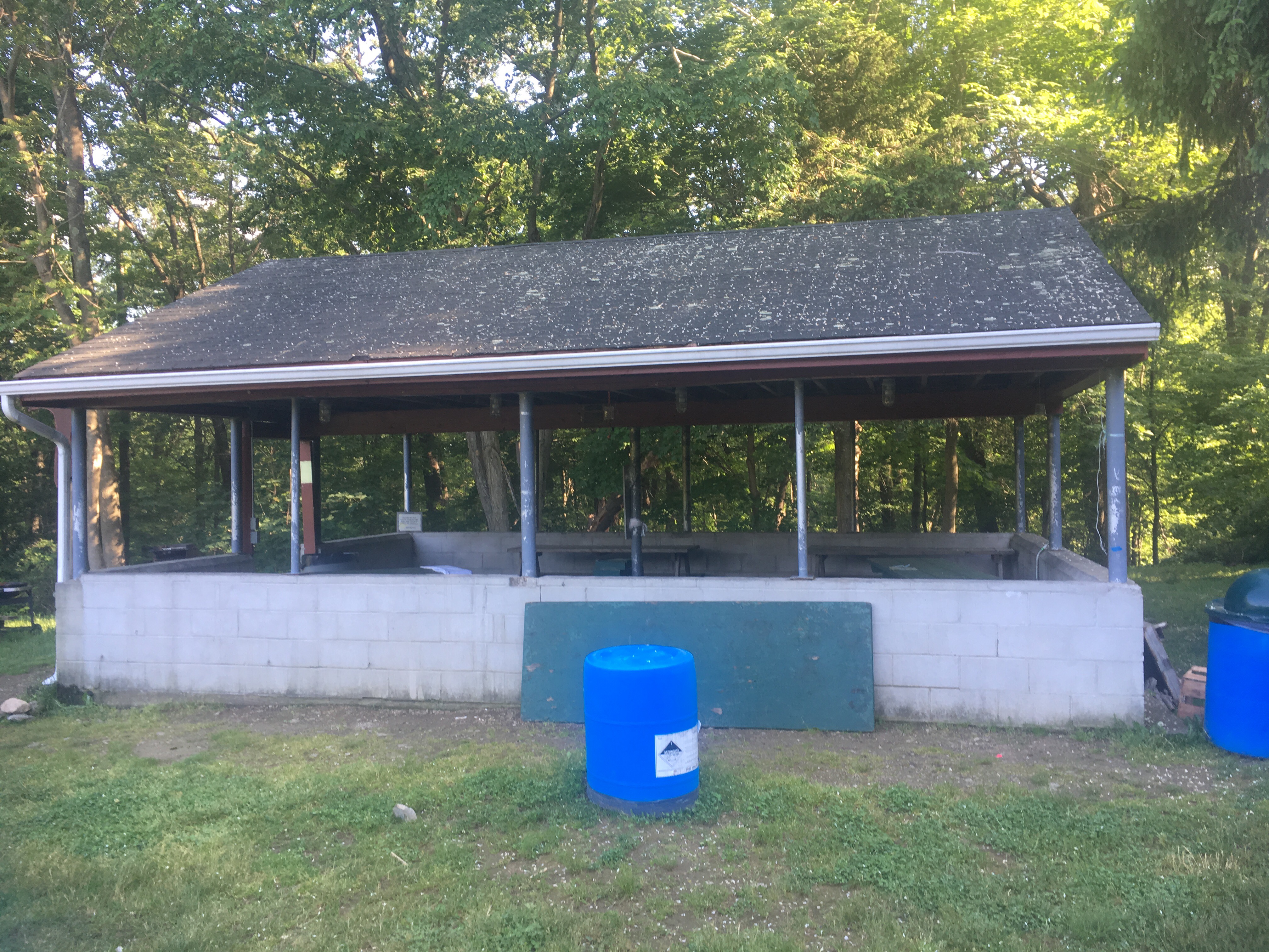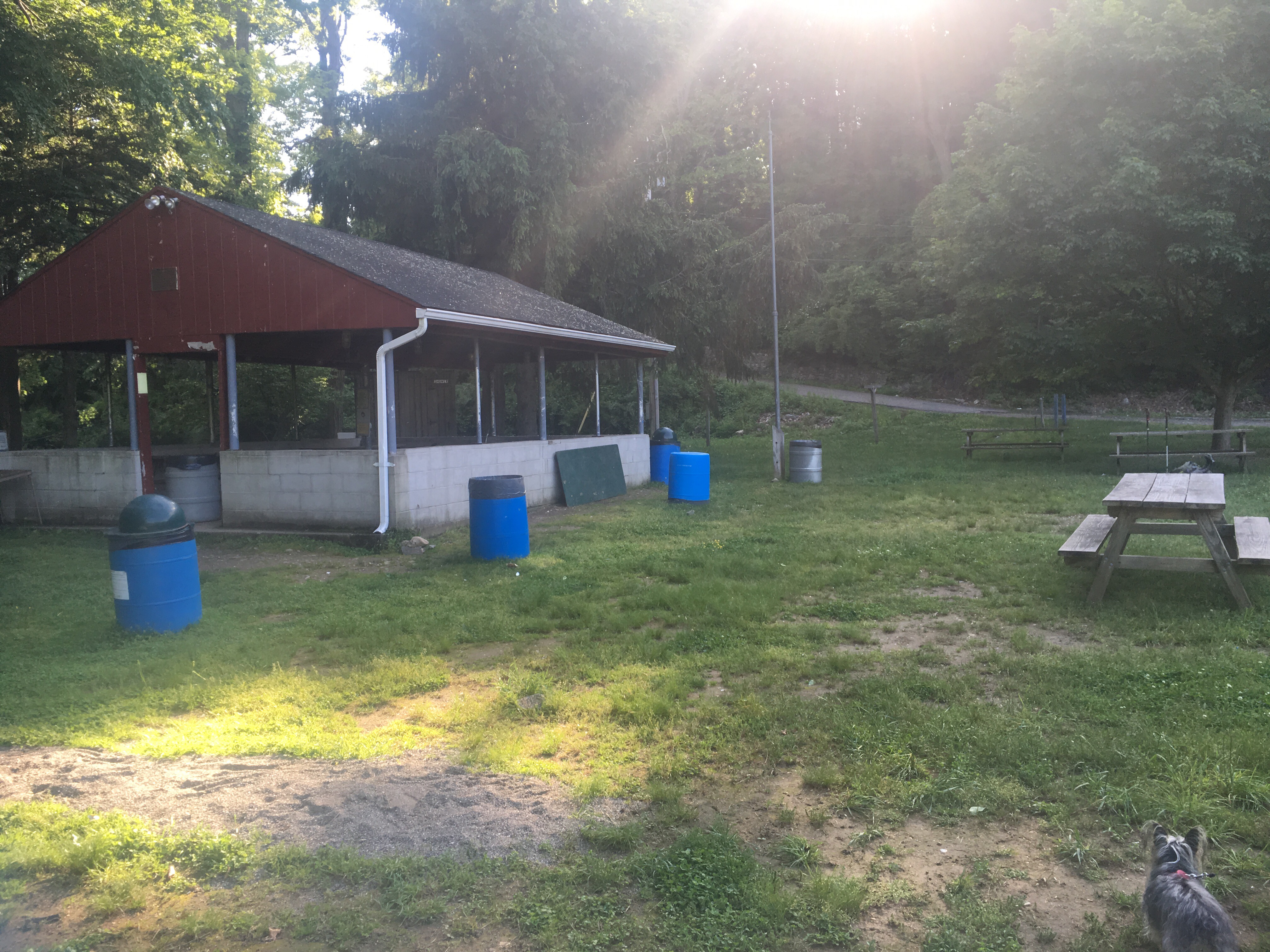 This is the most awesome free place I’ve stayed. We have a pavilion, picnic tables, a shower (cold), running water, electricity and porta potties. This actually a ball field.